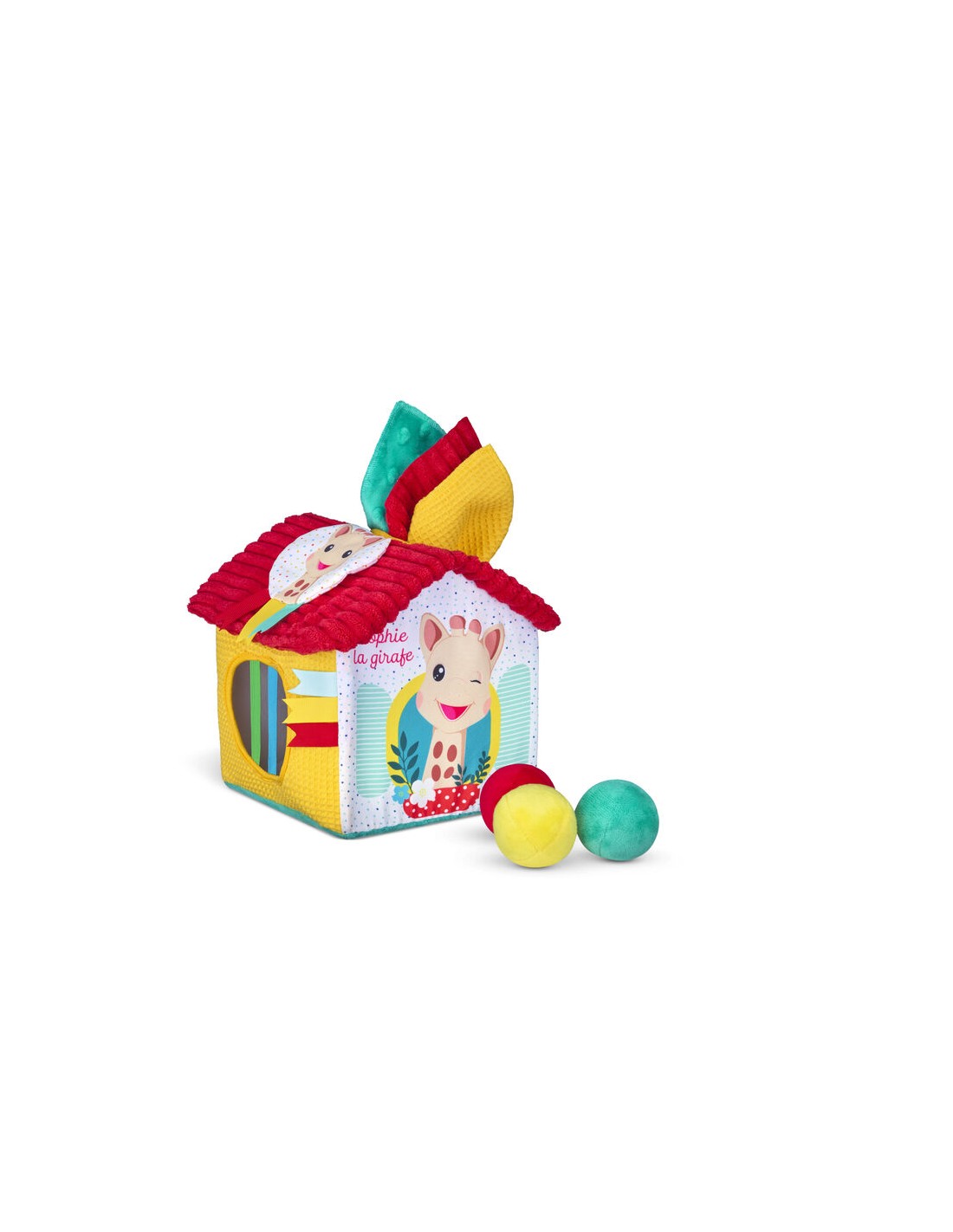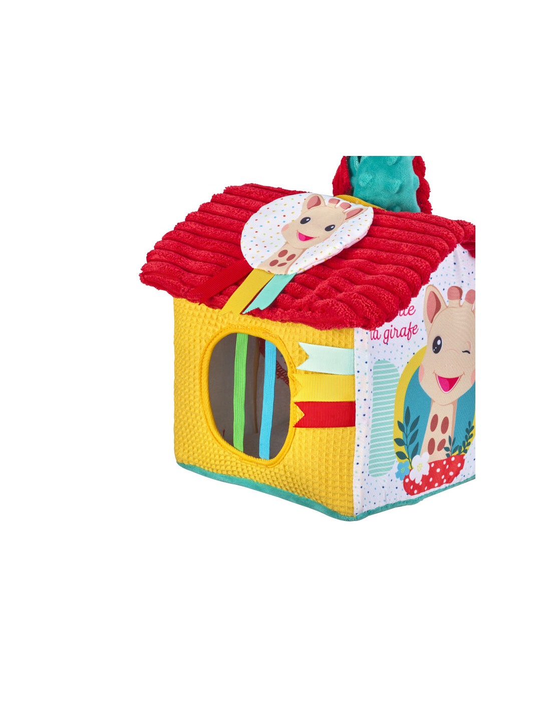 Casinha têxtil da Sophie, a Girafa, com cores e texturas variadas.