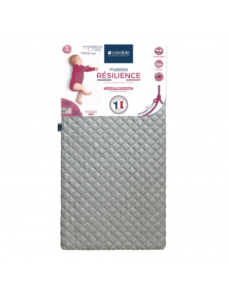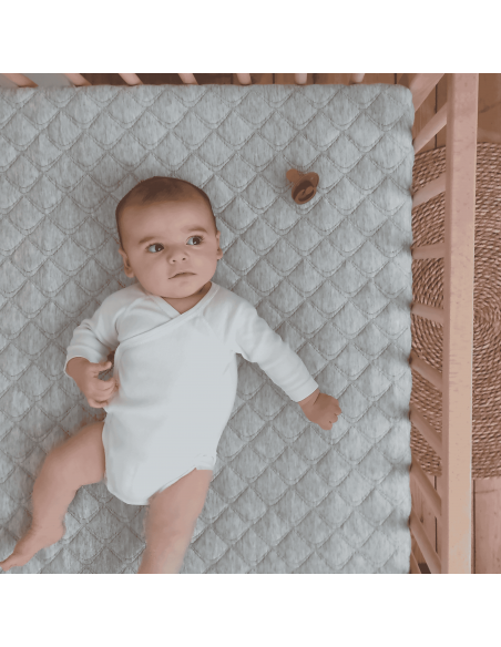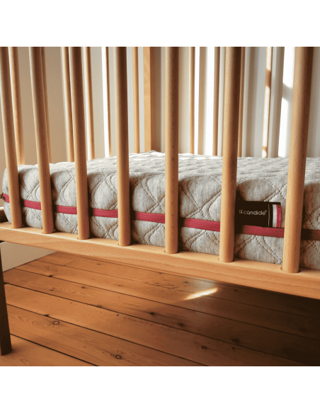 Espessura de 12 cm, ventilação ativa e capa removível a 360°. Sem tratamentos adicionados. Fabricado em França. Ideal para um descanso saudável desde o nascimento.