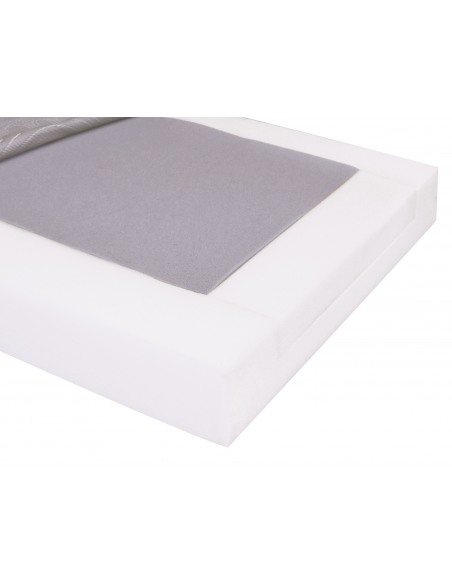 Com núcleo de espuma HR de 55 kg/m³ e uma firmeza de 75%, este colchão oferece um suporte ótimo para a coluna e os músculos do bebé.